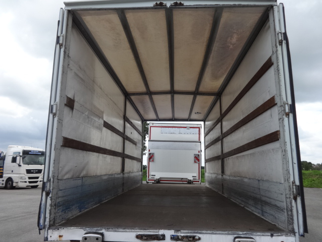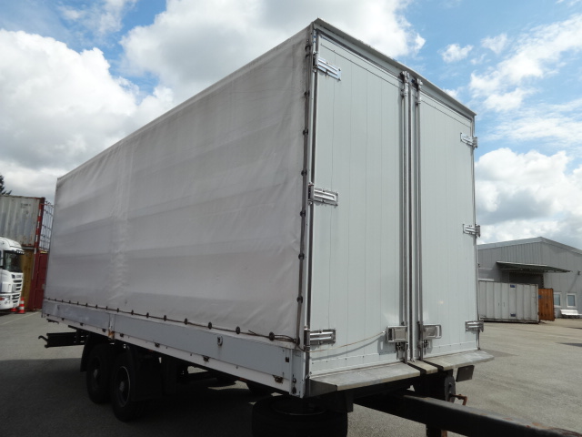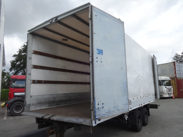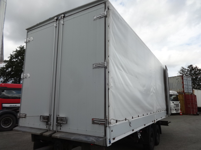 Der Anhänger ist in einem guten allgemeinen Zustand mit diversen Gebrauchs- und Abnutzungsspuren. Durchladeanhänger. GFFI Achsen, Luftfederung. Trommelbremsen. Verzinkter Rahmen. Portaltüren vorne und hinten. Reserverad. Bereifung 235/75R17,5 mit einem Profil von 40%.