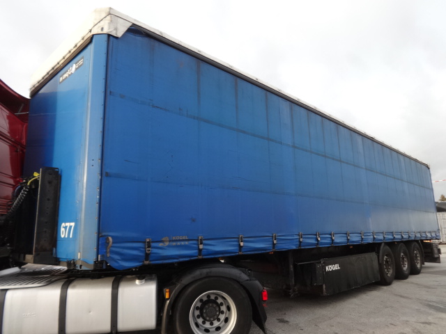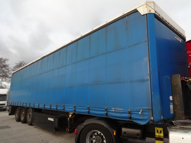 Der Auflieger ist OK. Kögel Achsen, Liftachse, Luftfederung, Scheibenbremsen, Portaltüren, Palettenkasten. Bereifung 385/65R22,5, Profil 30 %.