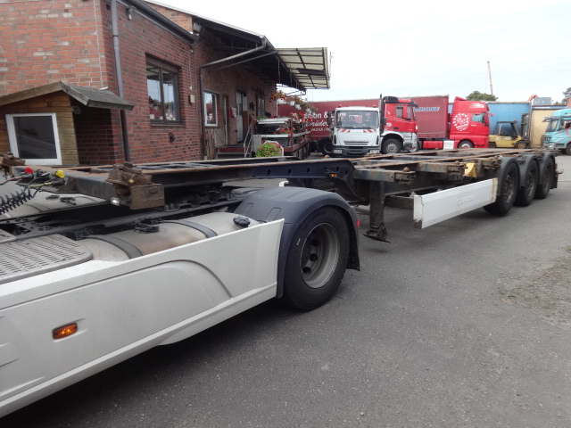 Der Auflieger ist dem Alter entsprechend ok mit diversern Gebrauchs- und Abnutzungsspuren. SAF-Achsen. Liftachse. Luftfederung. Scheibenbremsen. Länge ausziehbar von 10960 auf 12560 mm. Bereifung 385/55R22,5 mit einem Profil von 30 - 70%.