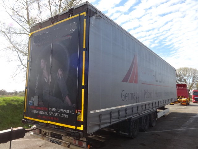 Der Auflieger ist in einem guten allgemeinen Zustand mit diversen Gebrauchs- und Abnutzungsspuren. Sicherheitsprüfung bis 11.2026. Edscherverdeck. Portaltüren. SAF-Achsen. Liftachse. Scheibenbremsen. Bereifung 435/50R19,5 mit einem Profil von 30 bis 40%.