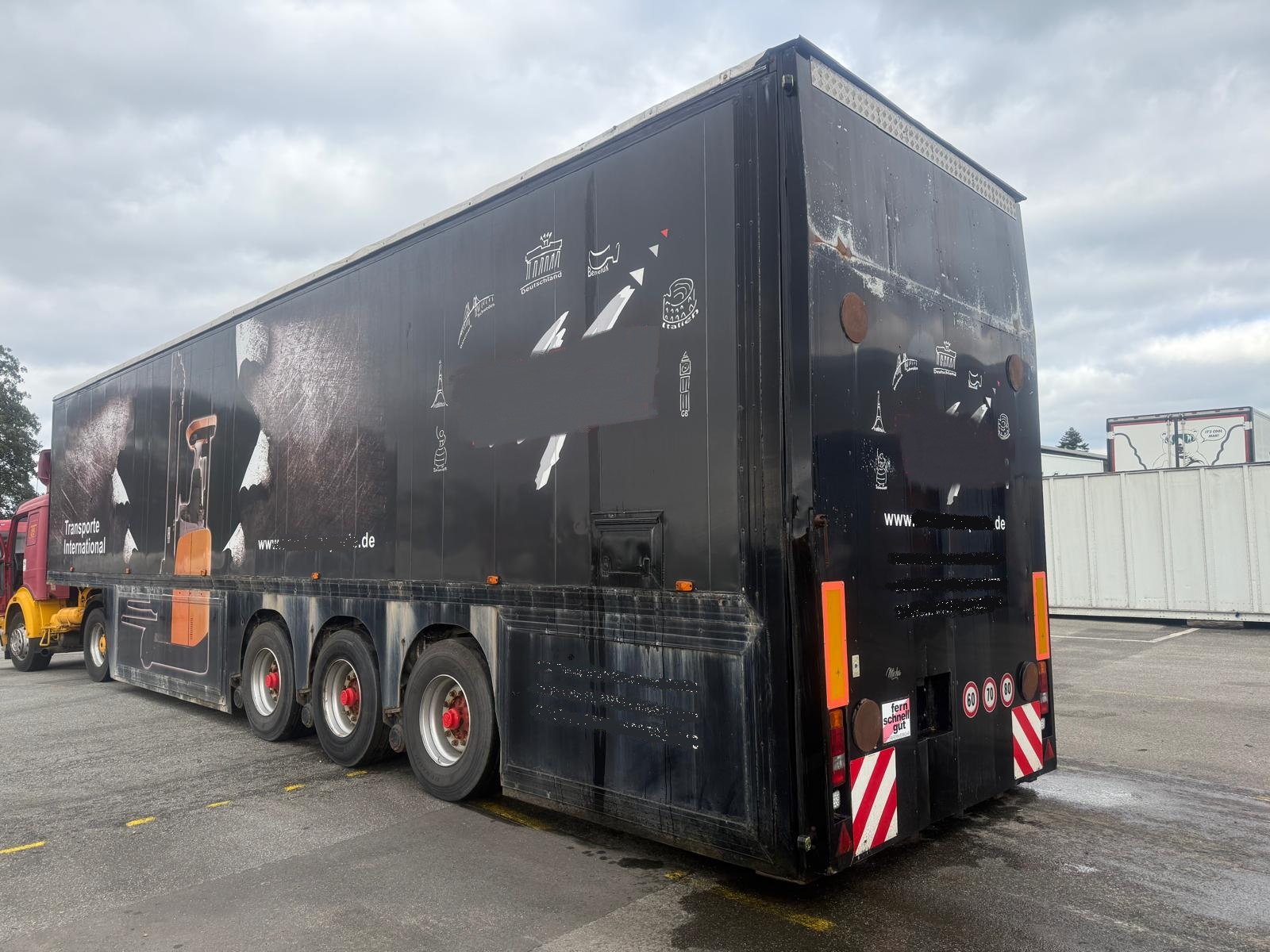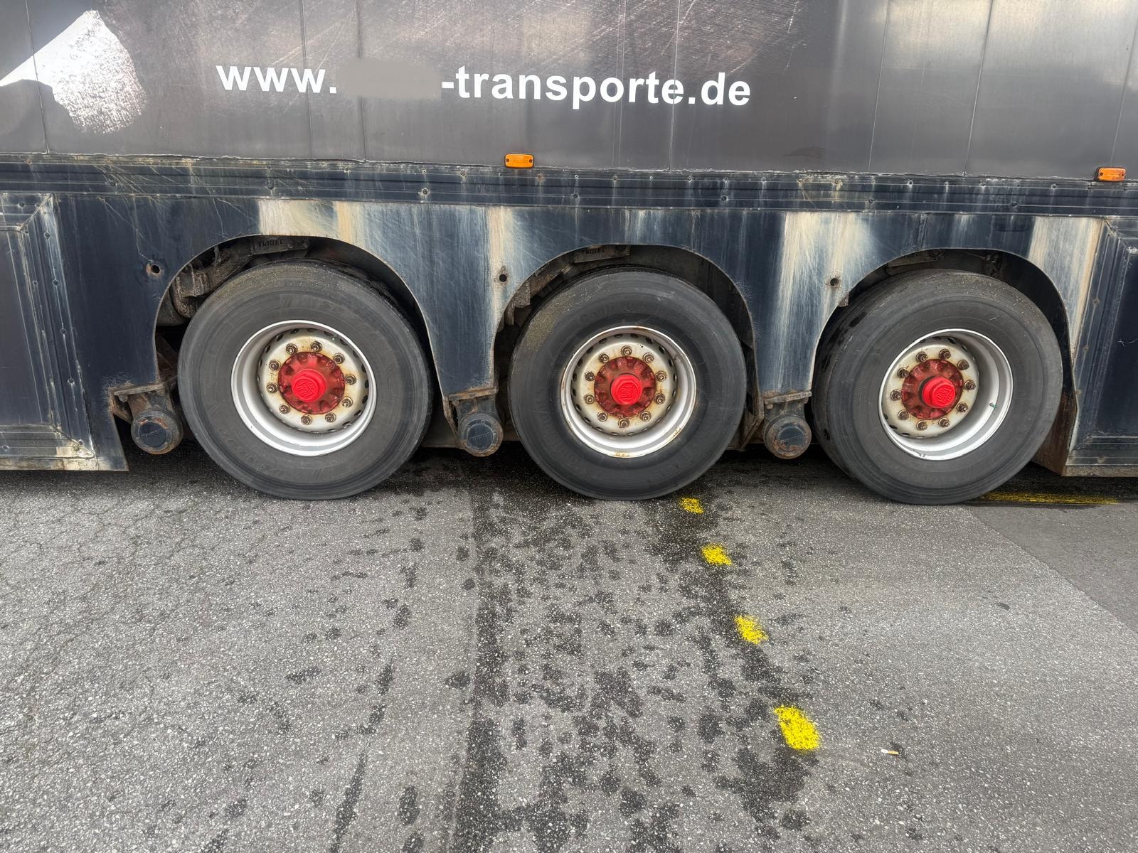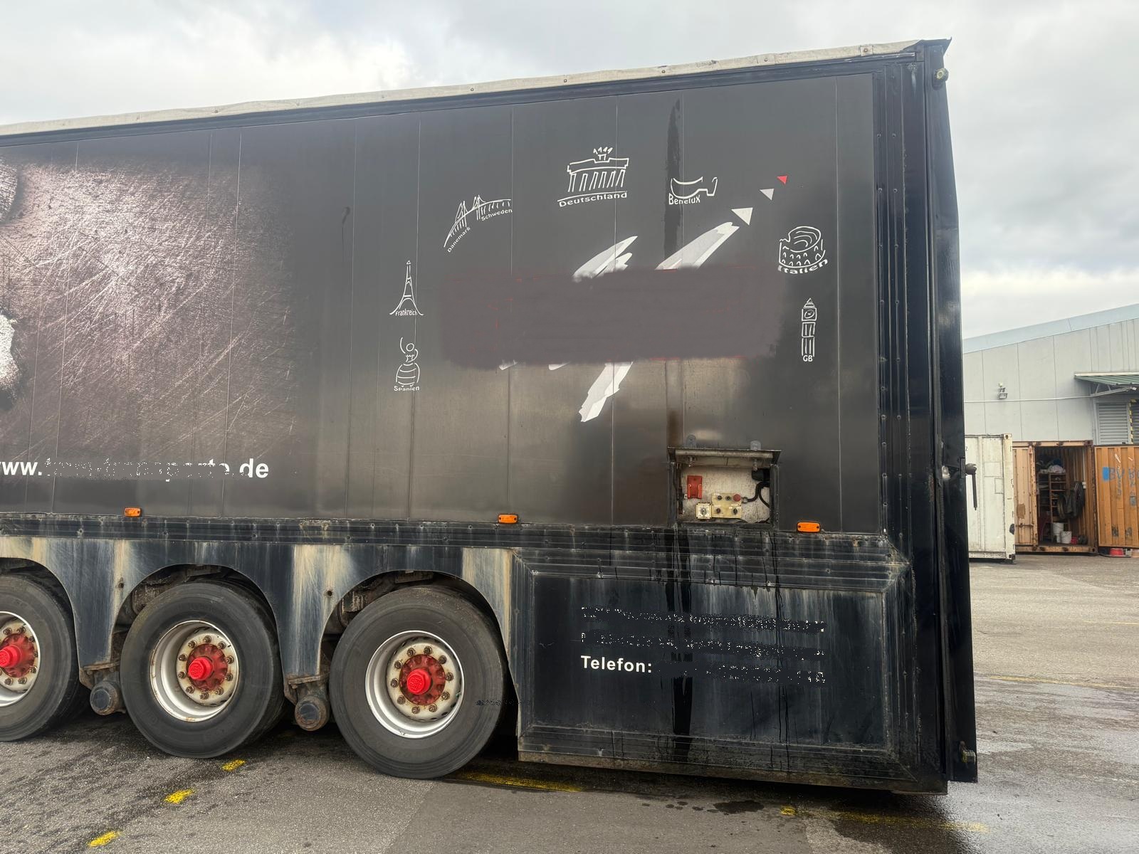 Der Auflieger ist dem Alter entsprechend OK. Spezialaufbau. Laderampe hinten. BPW-Achsen. Trommelbremsen. Bereifung 385/65R22,5 mit einem Profil zwischen 40 und 70%.