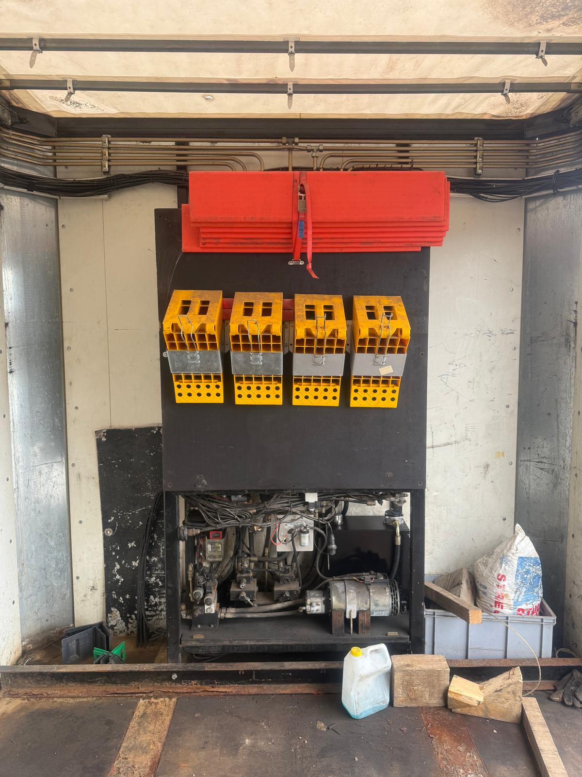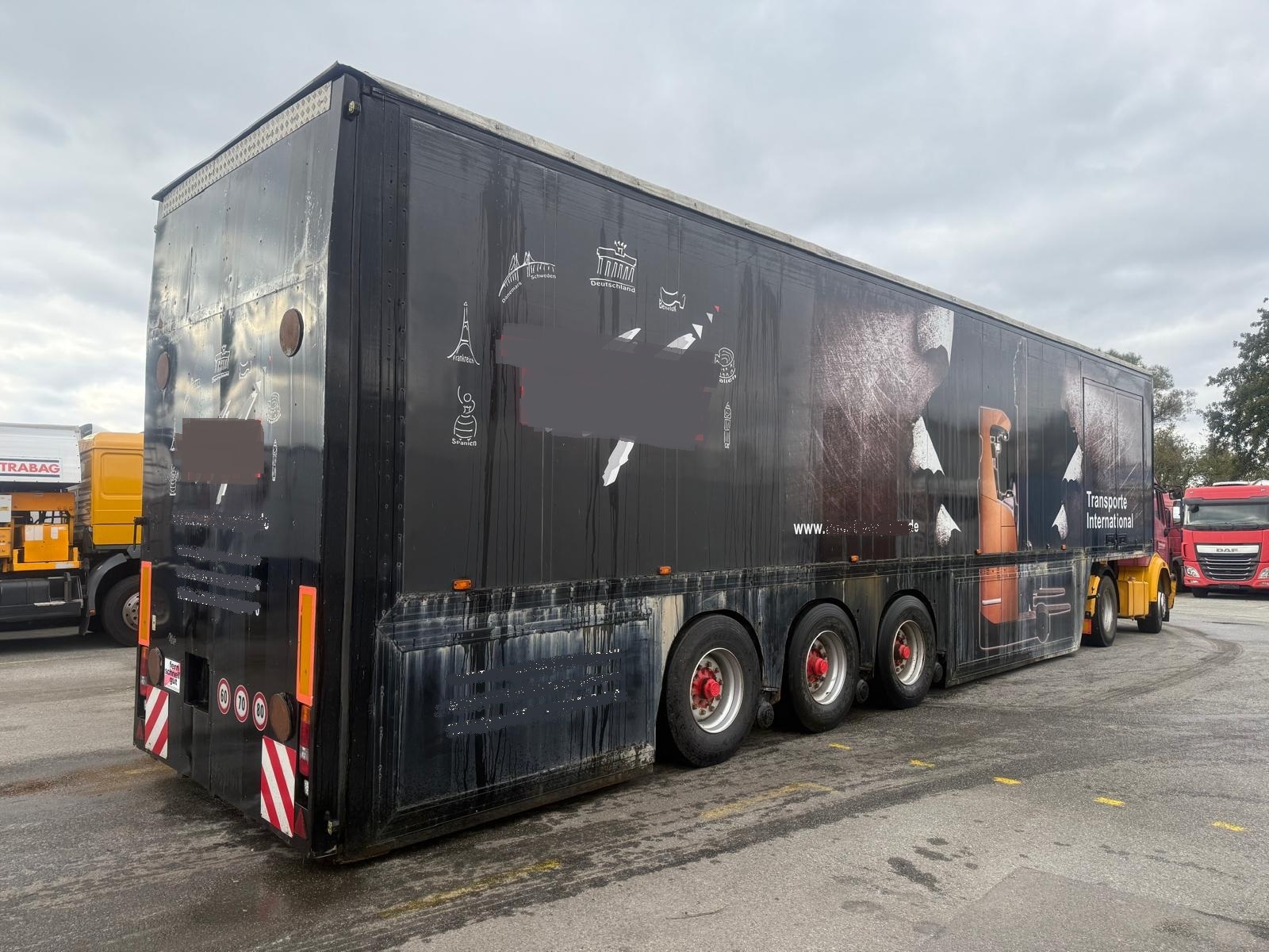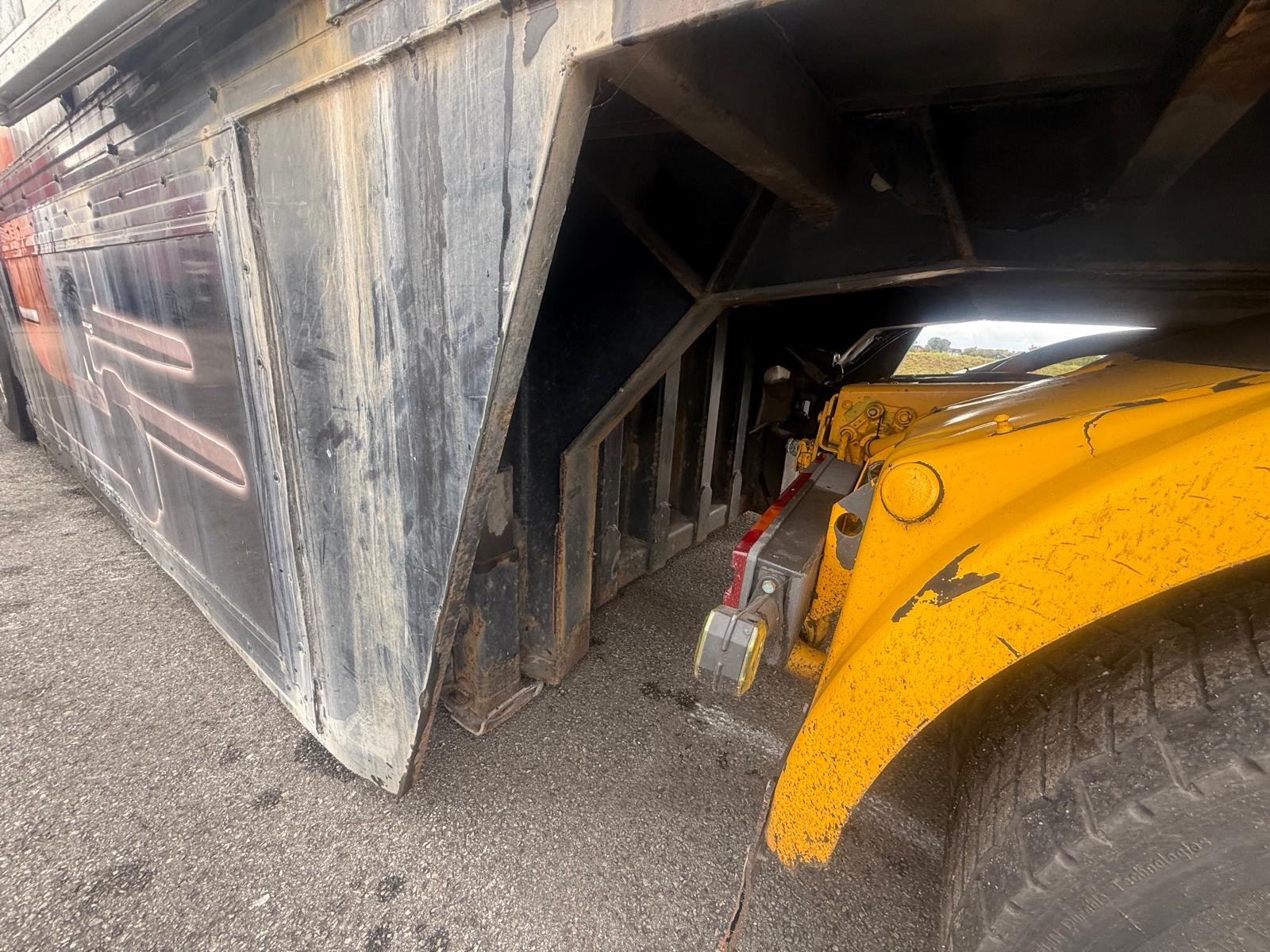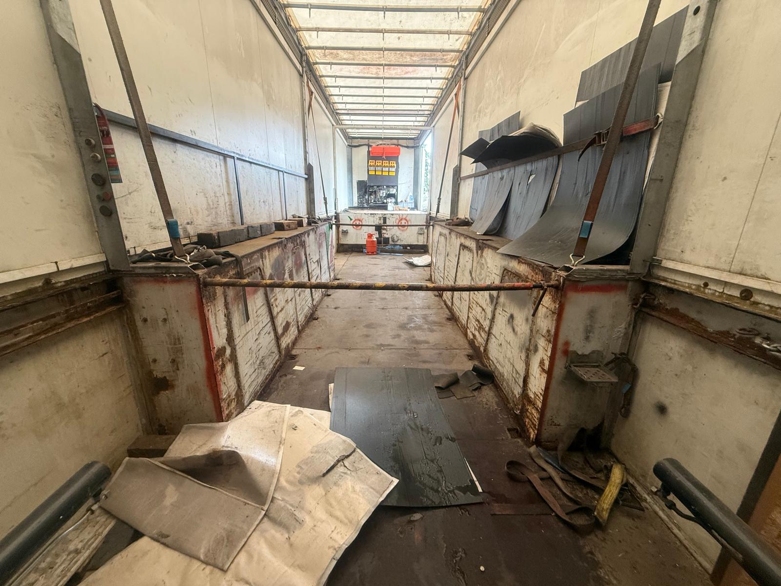 Der Auflieger ist dem Alter entsprechend OK. Spezialaufbau. Laderampe hinten. BPW-Achsen. Trommelbremsen. Bereifung 385/65R22,5 mit einem Profil zwischen 40 und 70%.